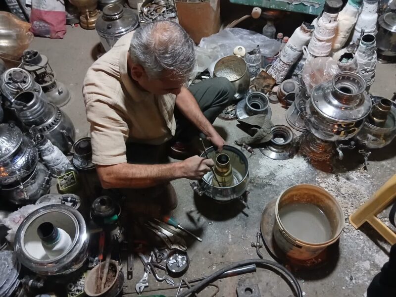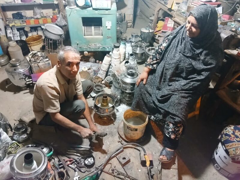 هاشم آقا پاسخ میدهد: «بله، زیاد. هنوز جاهایی هست که نه گاز دارند، نه برق. مثل باغها، دامداریها و خانههای قدیمی. مردم هنوز از چراغ نفتی، گردسوز، پریموس، فانوس، زنبوری و والور استفاده میکنند. همهشان نیاز به تعمیر پیدا میکنند. همین است که کار هنوز ادامه دارد.»